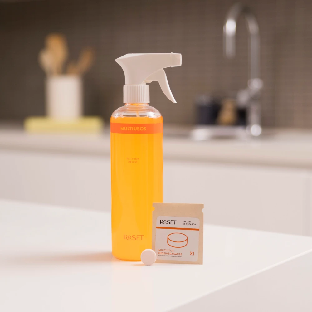 Simplifica tu rutina de limpieza y reduce tu consumo de plástico de un solo uso, con nuestro desengrasante multiusos en forma de tab efervescente.